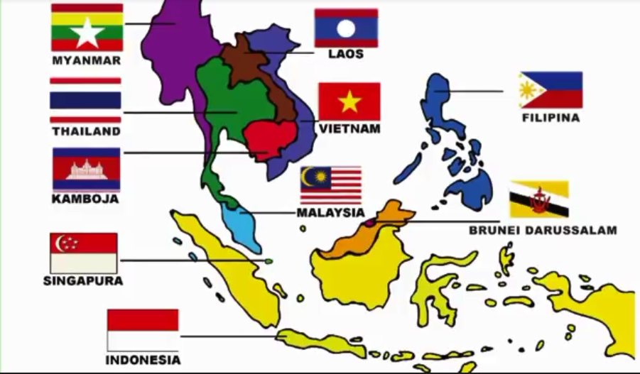 - Daratan Berbentuk Gugusan Kepulauan : Wilayah yang berbentuk gugusan kepulauan adalah Filipina, Indonesia, wilayah Malaysia bagian timur, Singapura, dan Brunei Darussalam.